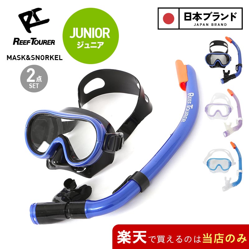 | REEF TOURER Kids Children's Snorkel Set of 2 0 2022 SUMMER RC0207 REEF TOURER 2022 SUMMER COLLECTION A snorkel set for children with easy strap adjustment that makes it easy to wear a mask. The mask has a one-touch buckle that allows you to adjust the fit while wearing it. The snorkel is equipped with a W guard that prevents water from entering the pipe. Uses tempered glass that is hard to break and will not hurt you even if it breaks. Safe and secure silicone material is used precisely because it is a tool that touches the skin directly. |
