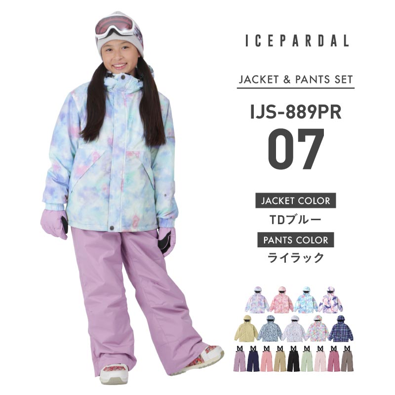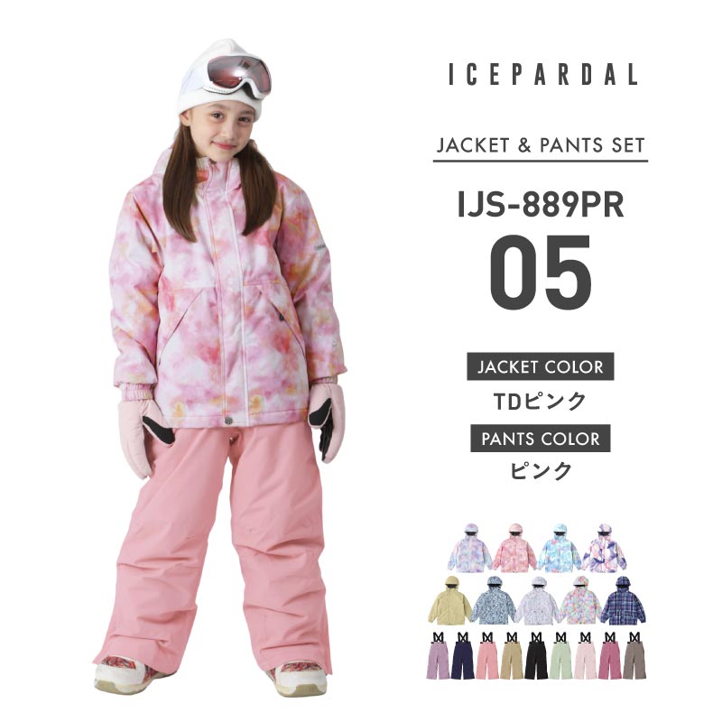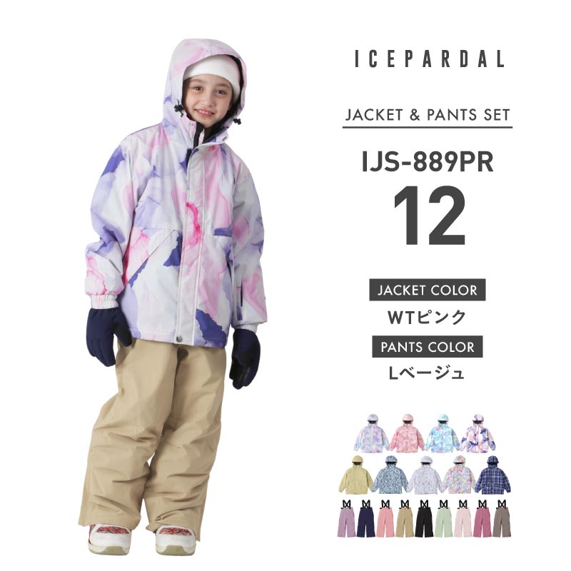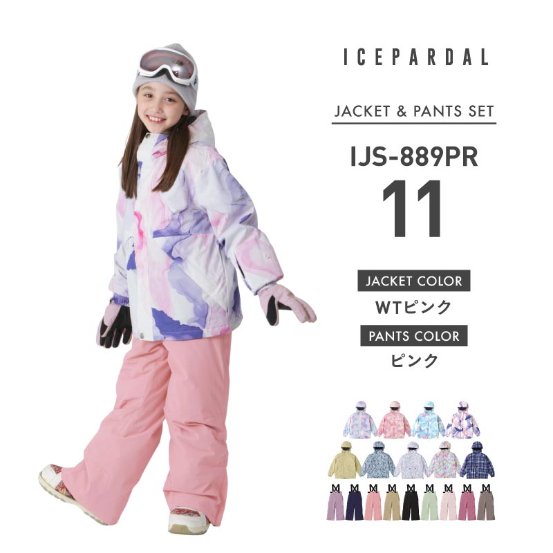 [1~14カラー] スノーボードウェア キッズ ジュニア スキーウェア 上下セット 中綿入り 撥水 防寒 15cmサイズ調整可 25-26モデル ICEPARDAL/アイスパーダル IJS-889PR