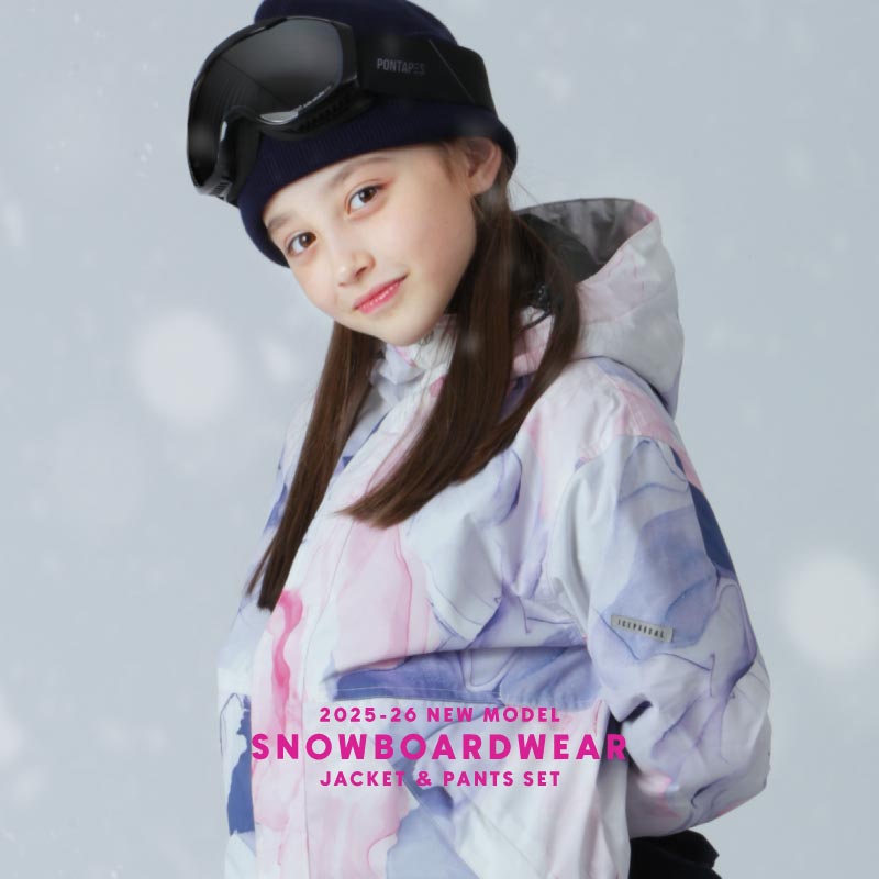 2025-2026モデル PONTAPES/ポンタぺス キッズ スノーボードウェア プリント柄 上下セット IJS-889PR