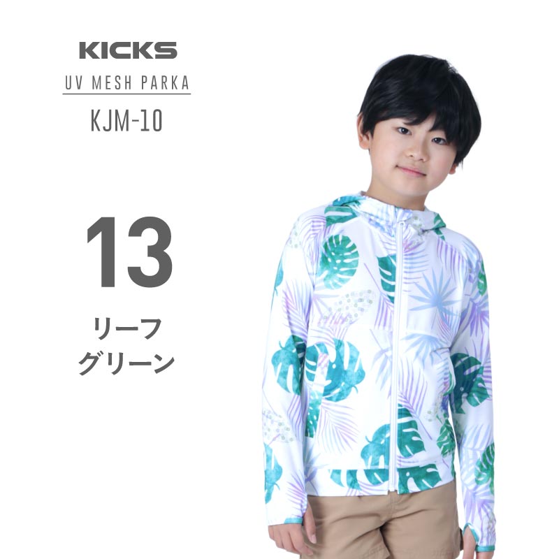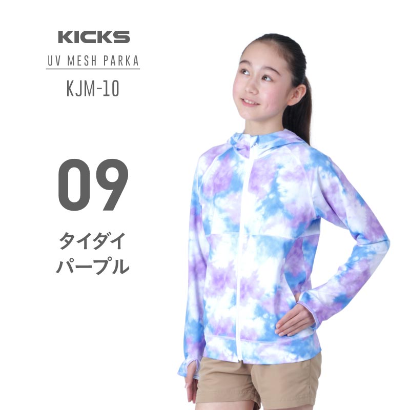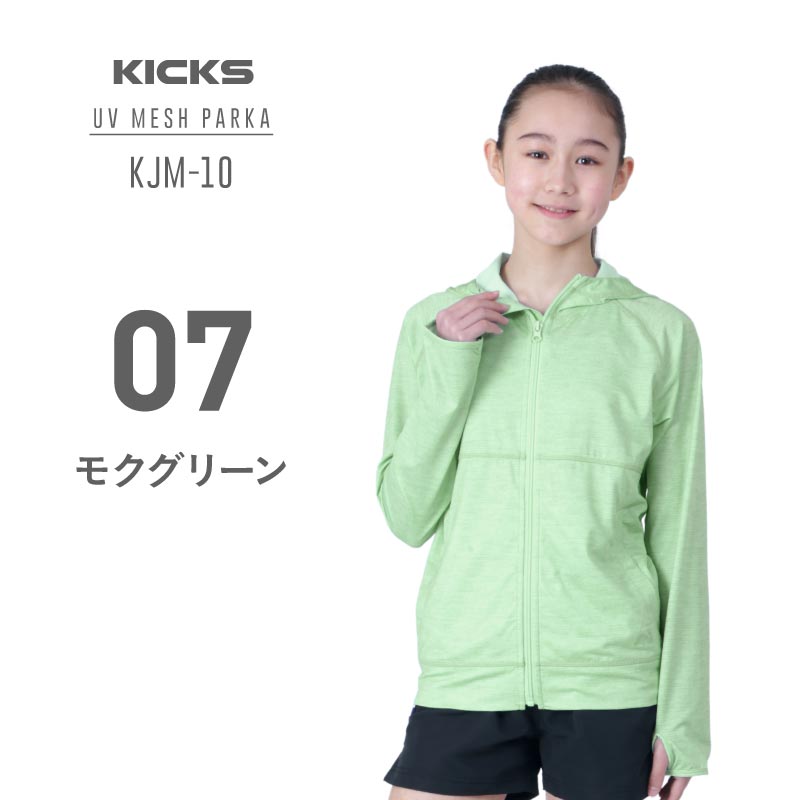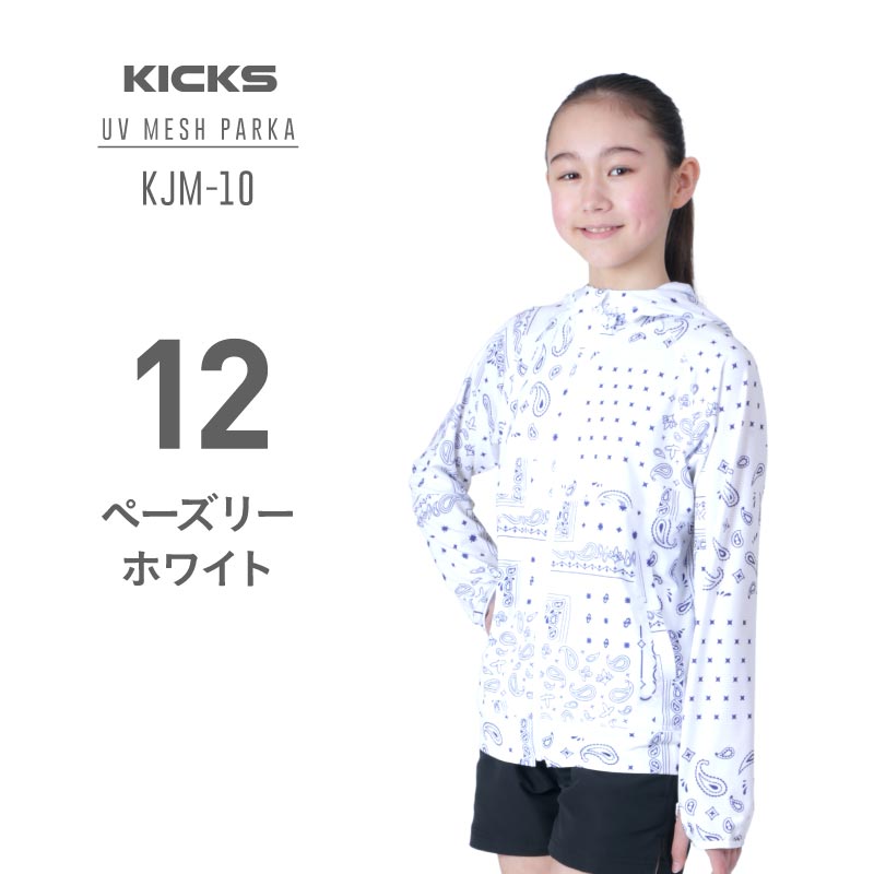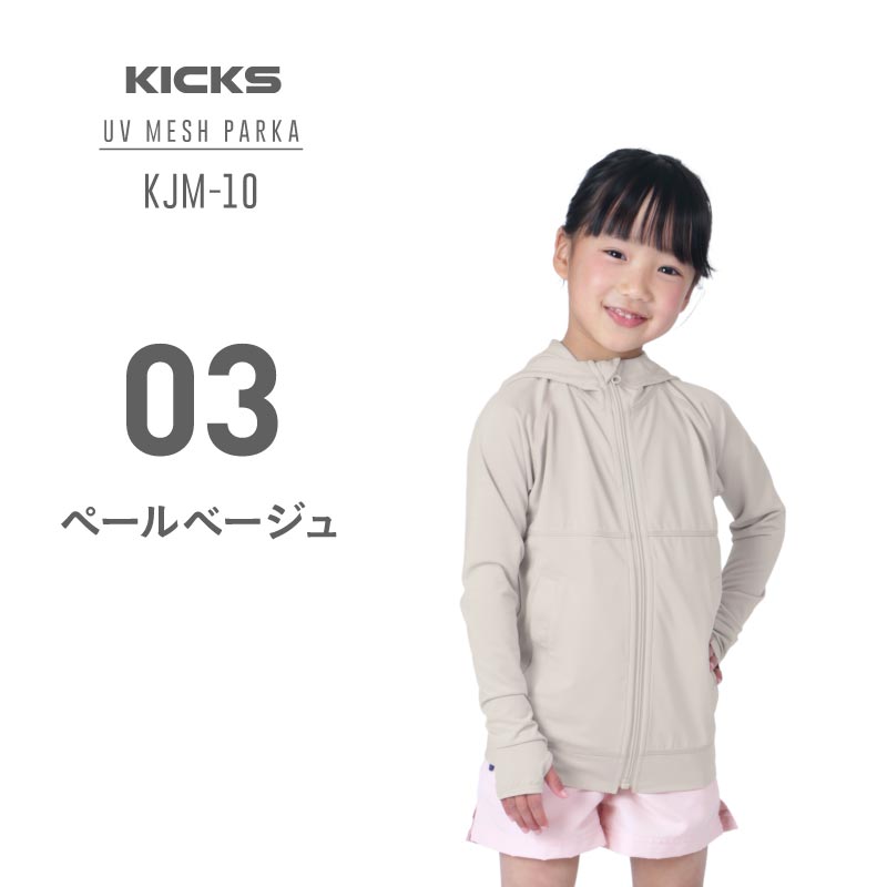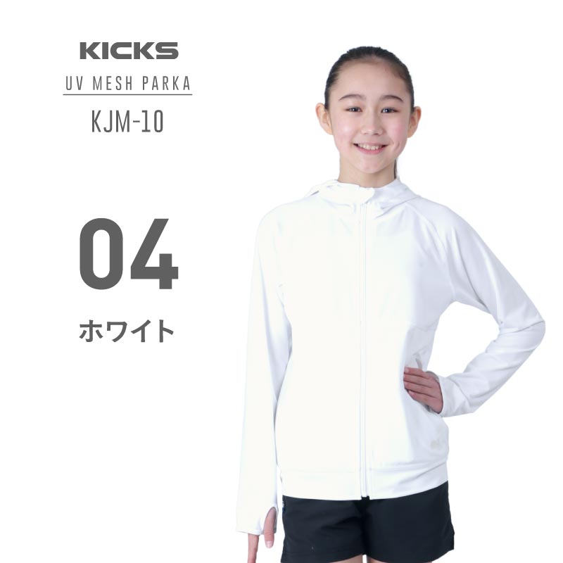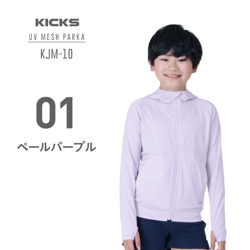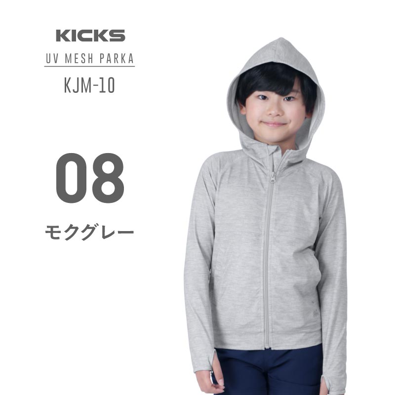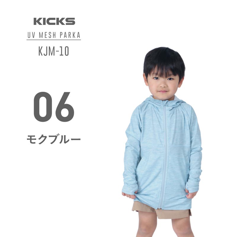 | KICKS KJM-10 Kids Hooded Mesh Hoodie Mesh material rash guard! With a hood, you can also cover the sunburn on your neck! It has excellent breathability and is refreshing to wear. [Rash Guard] ・Prevent sunburn with UPF 40 ・Insect repellent processing that is perfect for playing in the park ・Cool to the touch and smooth and comfortable to wear ・Sweat-absorbing and quick-drying for marine sports ・Sun protection up to the back of the hand with thumbholes ・A texture that is easy to match with everyday wear |