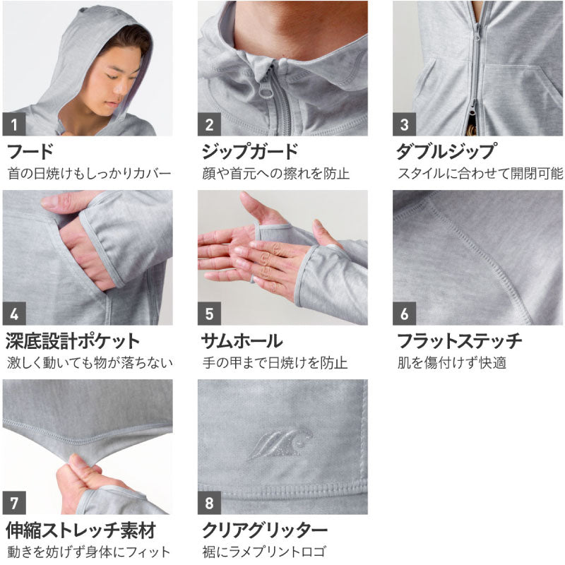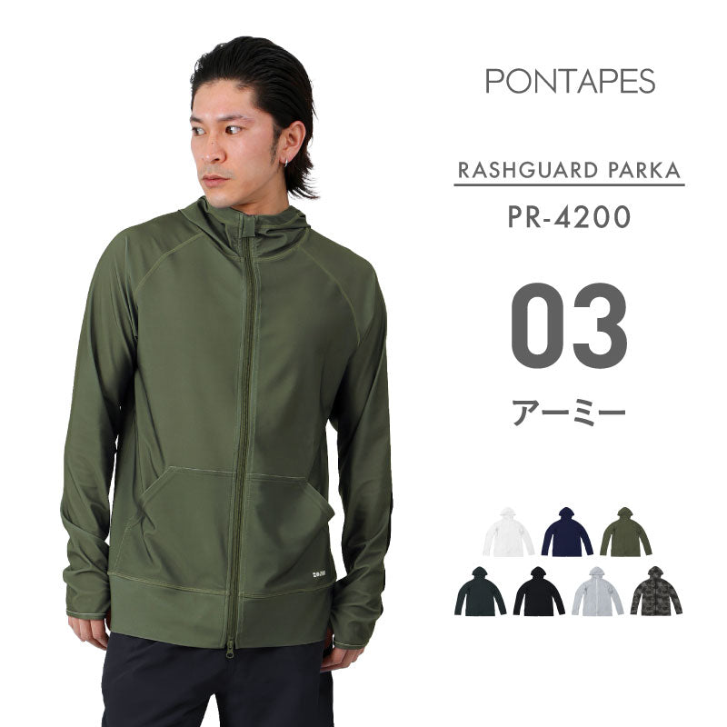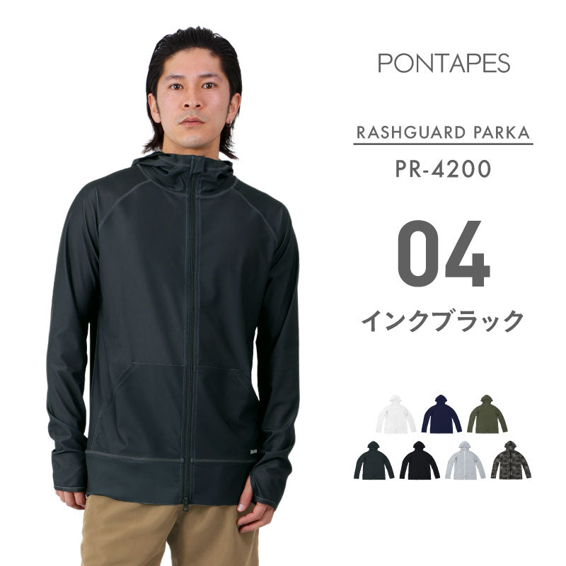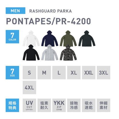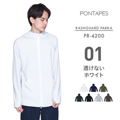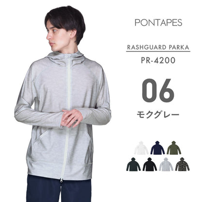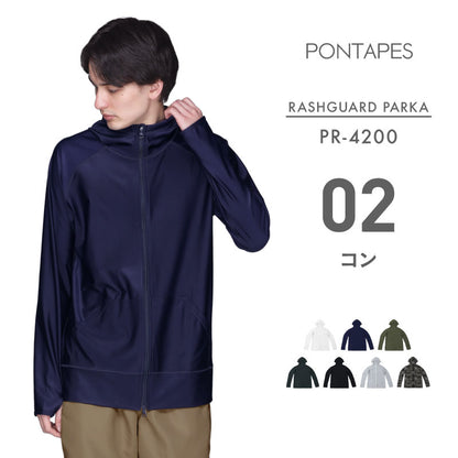 | PONTAPES PM-520 Unisex Hooded Mesh Parka Mesh material rash guard! Easy to match with everyday wear! It has excellent breathability and is refreshing to wear. [Rash Guard] ・Prevent sunburn with UPF 40 ・Insect repellent finish perfect for outdoor activities ・Cool to the touch and smooth and comfortable to wear ・W zip specification ・Sweat-absorbing and quick-drying for marine sports ・Sun protection up to the back of the hand with thumbholes |