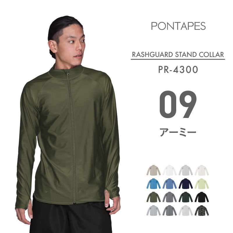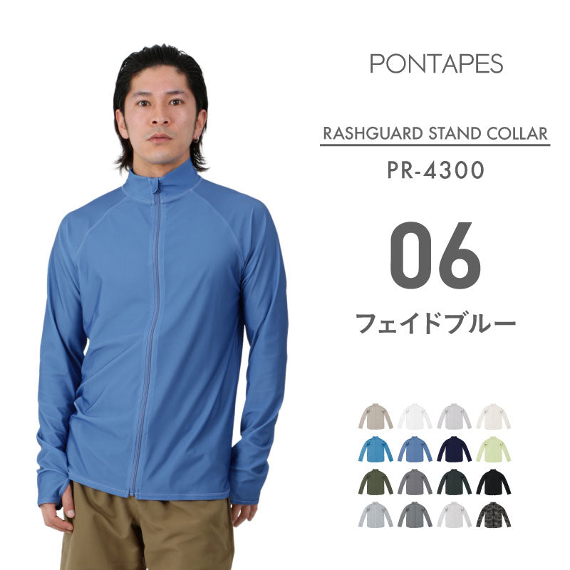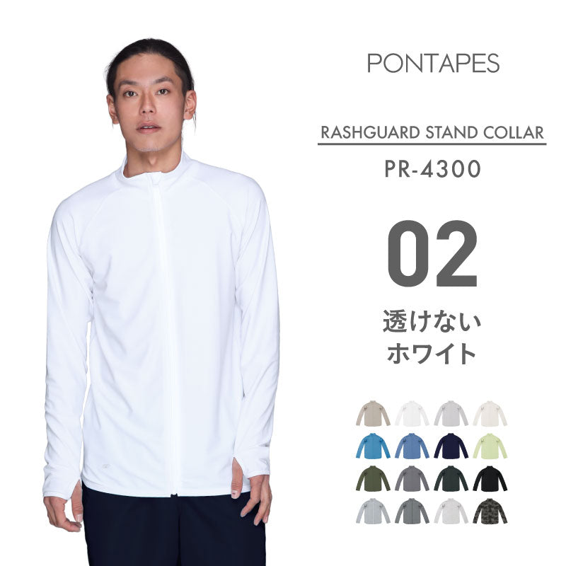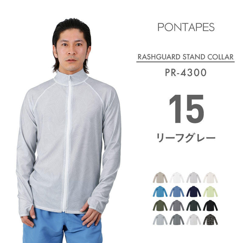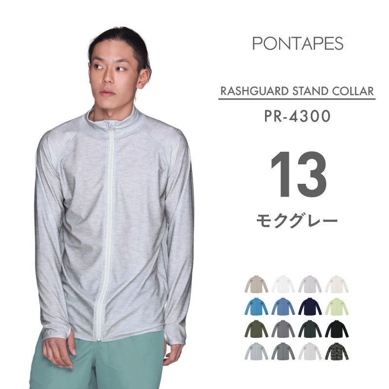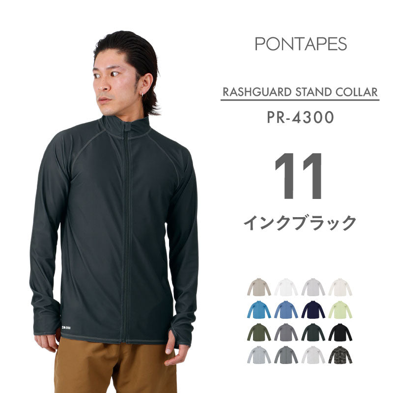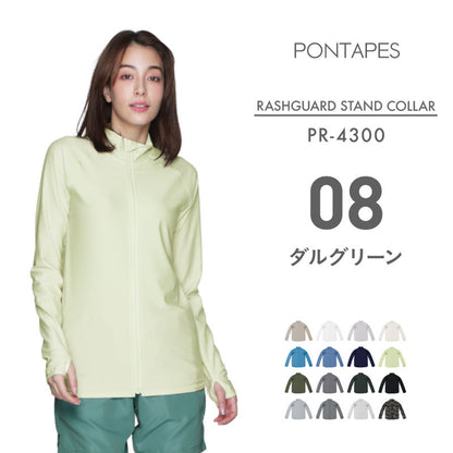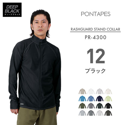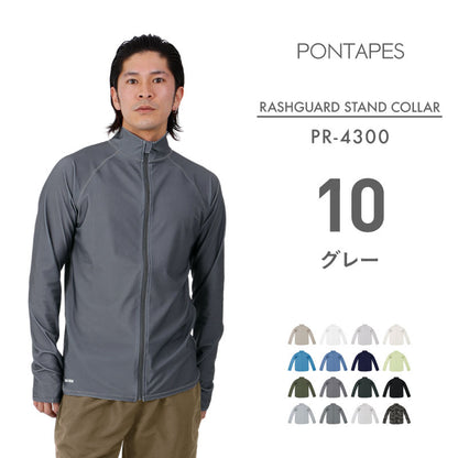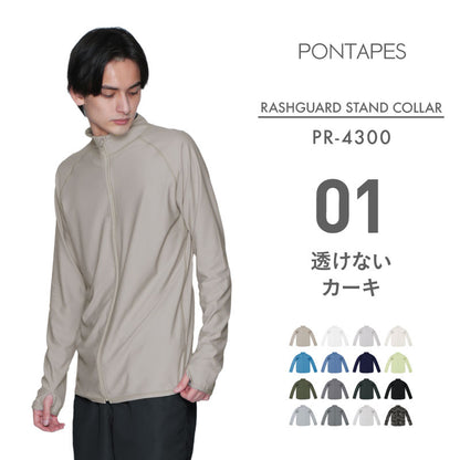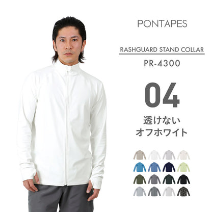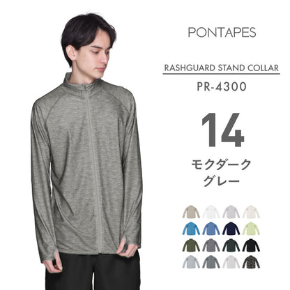 | PONTAPES PR-4300 Unisex Stand Collar Rashguard Swimsuit material rash guard! It is a stand-up collar type that is active and easy to move and suitable for swimming. [Rash Guard] ・Prevent sunburn with UPF 50+ ・Chlorine-resistant processing that allows you to swim while wearing it in the pool ・Cool to the touch and smooth and comfortable to wear ・High-quality YKK zip specifications ・Stretch material that expands and contracts ・Sun protection up to the back of the hand with thumbholes |
