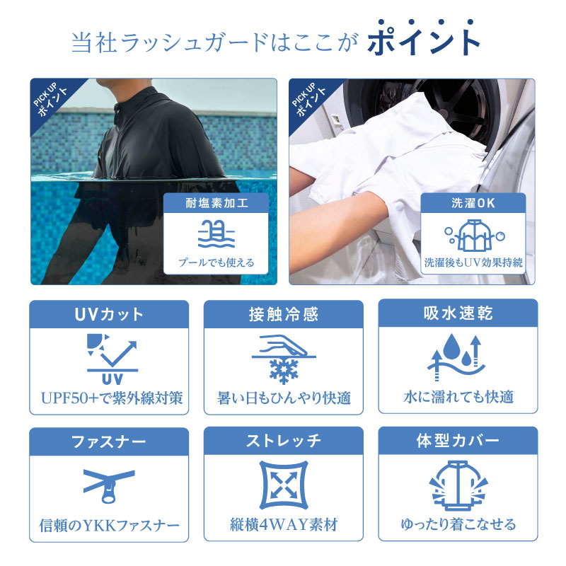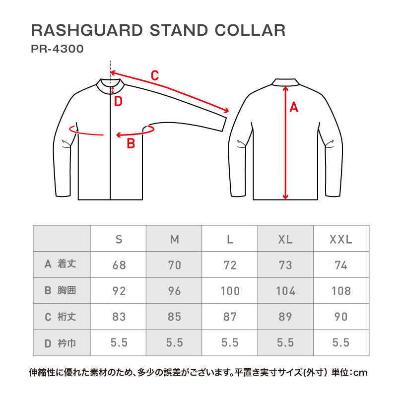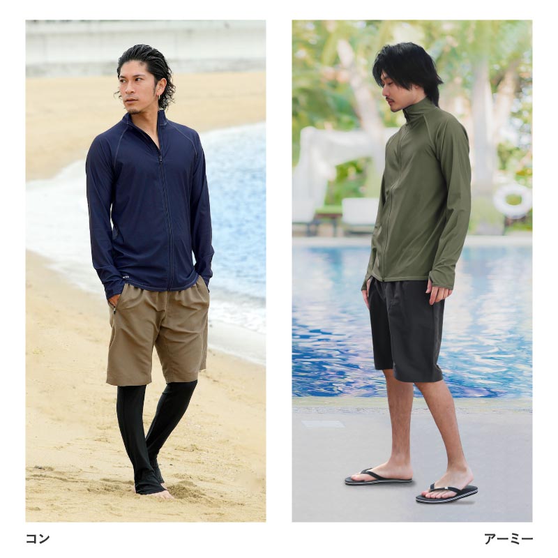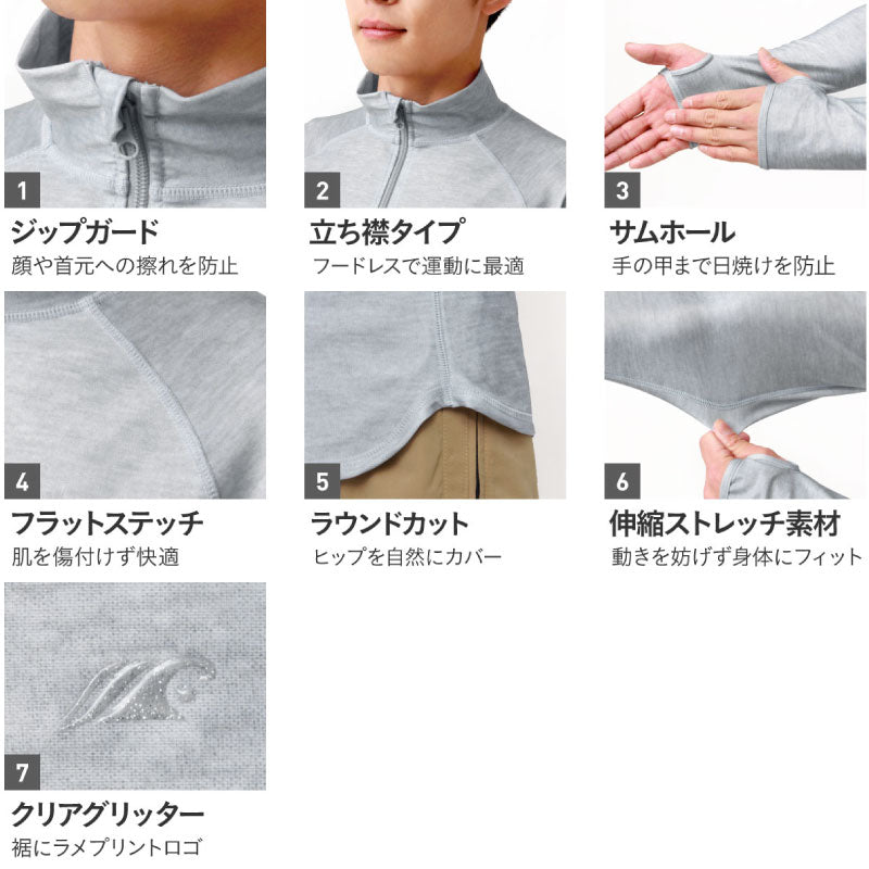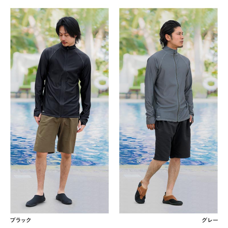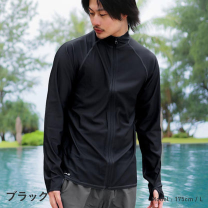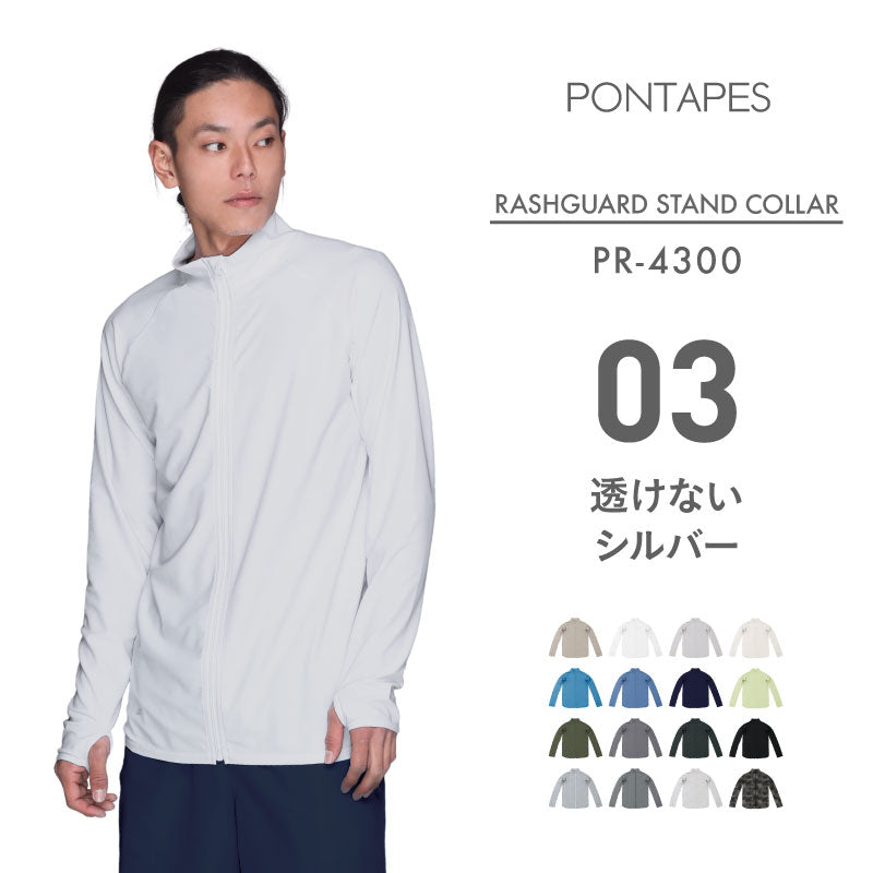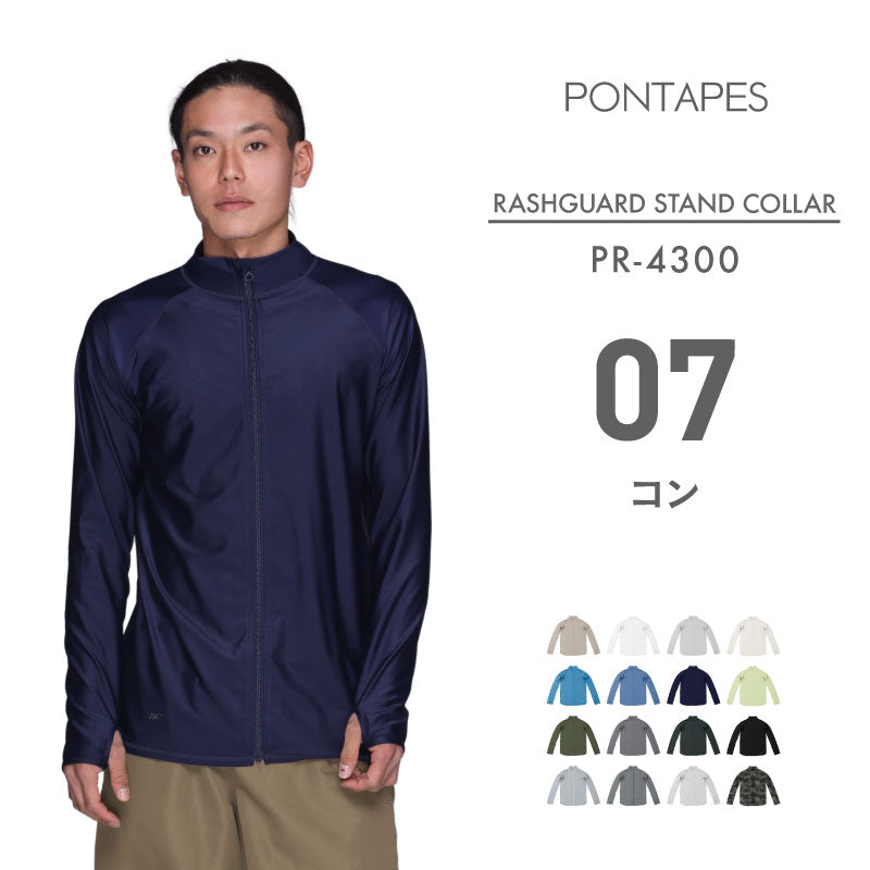 | PONTAPES PR-4300 Unisex Stand Collar Rashguard Swimsuit material rash guard! It is a stand-up collar type that is active and easy to move and suitable for swimming. [Rash Guard] ・Prevent sunburn with UPF 50+ ・Chlorine-resistant processing that allows you to swim while wearing it in the pool ・Cool to the touch and smooth and comfortable to wear ・High-quality YKK zip specifications ・Stretch material that expands and contracts ・Sun protection up to the back of the hand with thumbholes |