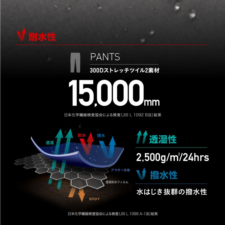300Dストレッチツイル2素材/耐水圧20,000mm