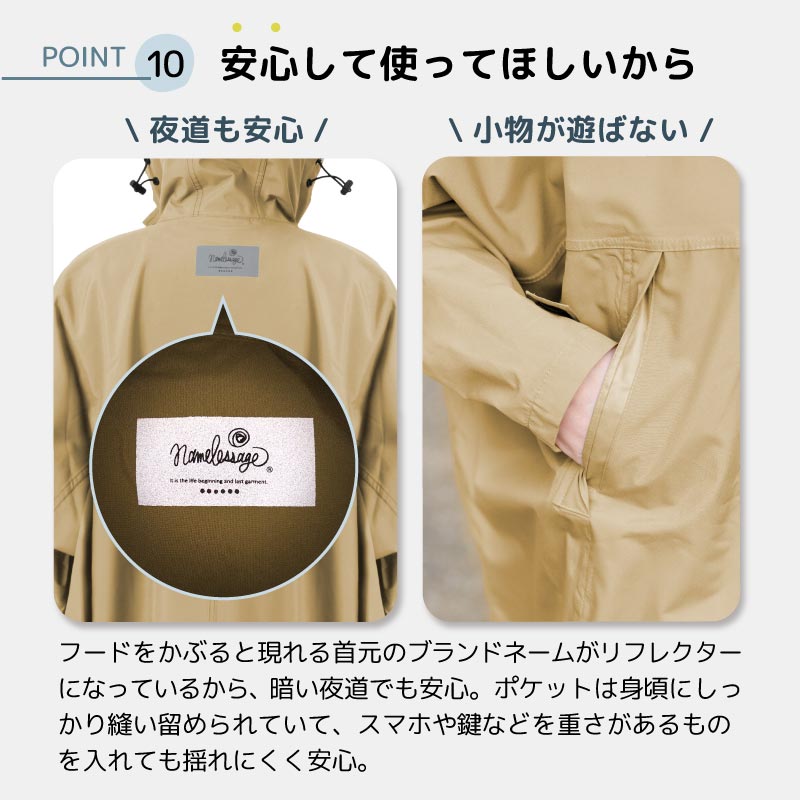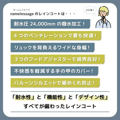 レインコート レディース メンズ レインウェア ロング丈 耐水圧24,000mm 蒸れにくい おしゃれ 動きやすい ママ NR-3201 namelessage/ネームレスエイジ ママアイテム