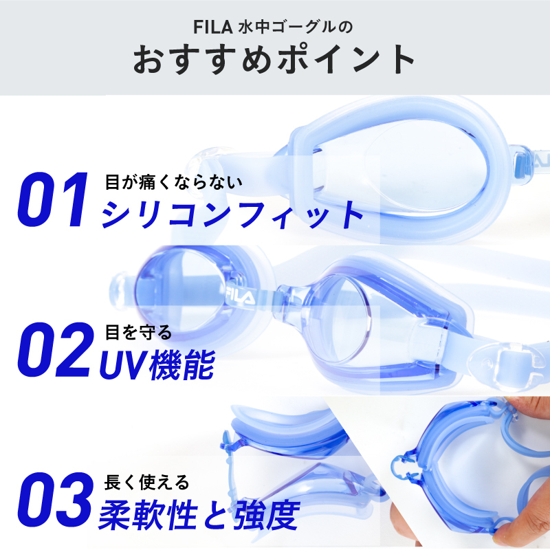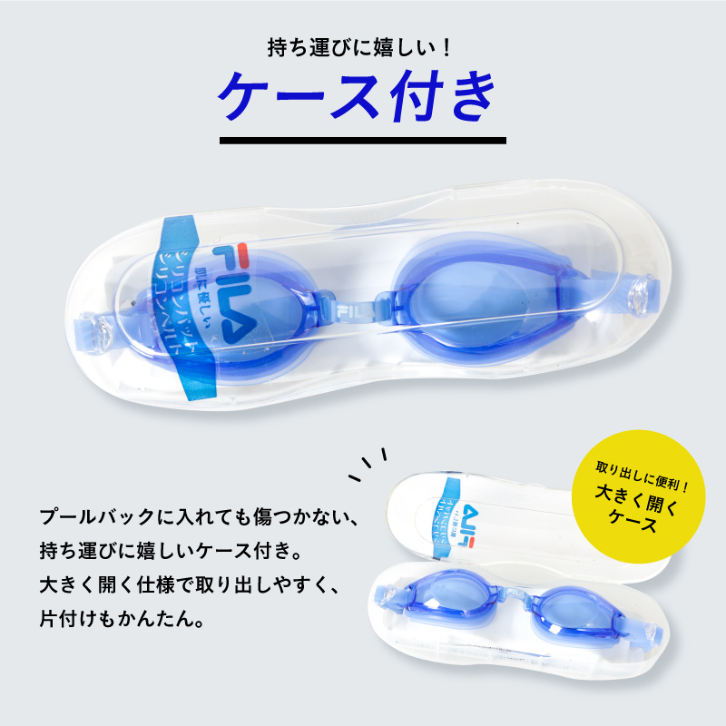 | FILA Junior Underwater Swim Goggles 2021 FALL FL-06 FILA 2021 FALL COLLECTION Junior underwater goggles of popular brand FILA with UV cut effect. It protects your eyes well and the silicone frame fits to prevent water intrusion. Skin-friendly, cushioned silicone pad/belt that is gentle on the skin◎ Adjustable nose to fit anyone. I like the characteristic plastic case, so I can store it safely. |