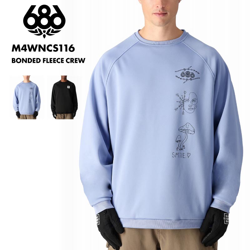 686/シックスエイトシックス メンズ トレーナー BONDED FLEECE CREW WINTER 24-25 M4WNCS116 スノーボード スキー ウインタースポーツ 防寒 スノボウェア スキーウェア トップス クルーネック ストレッチ 裏地フリース起毛 男性用