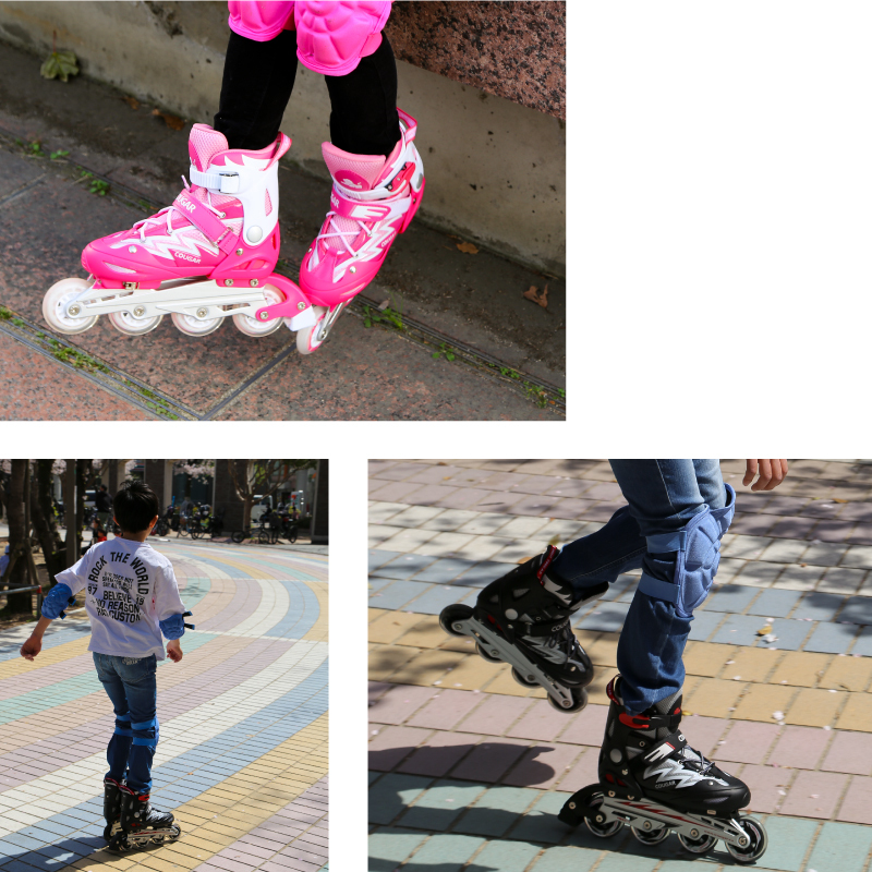 | 경량으로 알루미늄 프레임 채용의 내구성이 있는 인라인 스케이트. 크기 조절 가능하고 두꺼운 쿠션은 아픈 신발 마찰이나 충격으로부터 발을 보호합니다. 익숙해지면 브레이크는 분리하거나 손잡이에 맞게 좌우 교체도 가능. 휠(타이어)은 미끄럼이 좋은 폴리우레탄제로 내구성도 발군◎ ・사이즈 변경은 공구 불요 0.6센티 간격으로 4단계. ・휠 사이즈:S=68mm M=72mm L=76mm 경도 80A ・베어링 등급 ABEC7 S(17.5-20cm) M(20.5-23cm)L(23.5-26cm) |