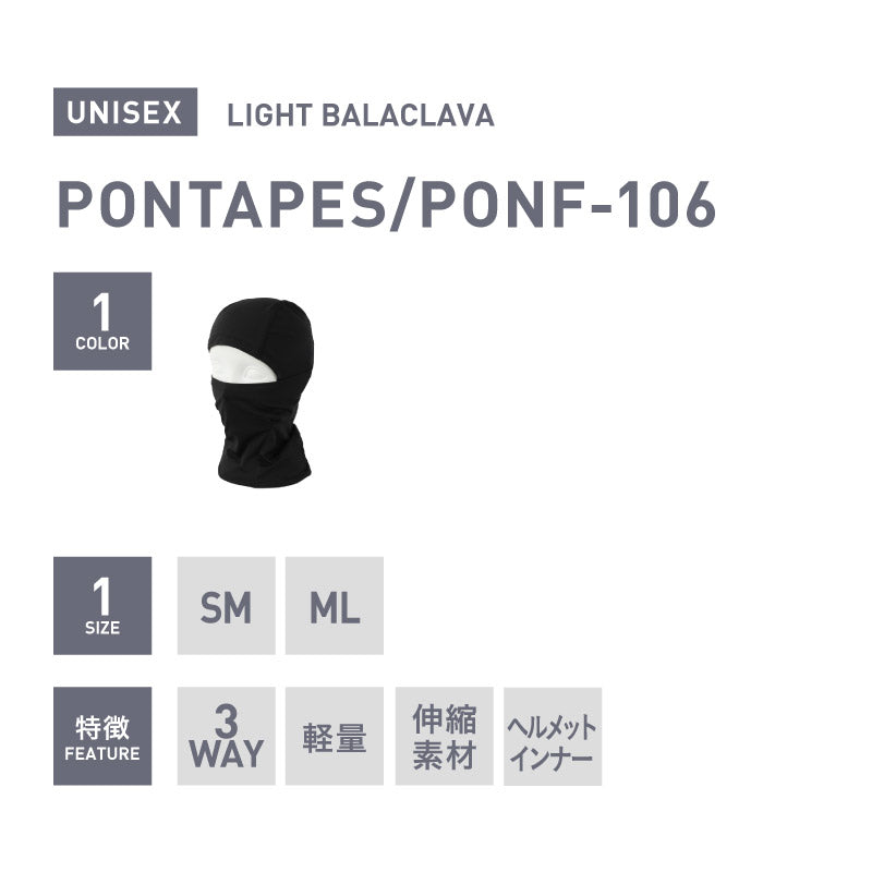 スノーボード バラクラバ メンズ レディース スキー フェイスマスク フェイスカバー ネックカバー フェイスガード 3way 防寒 保温 冬 PONTAPES/ポンタぺス PONF-106 メール便発送