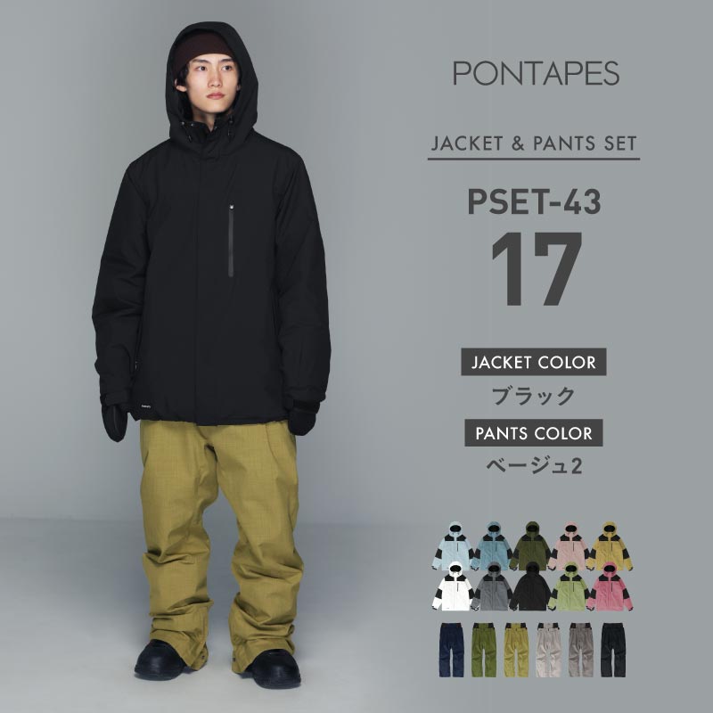 [17~22カラー] スノーボードウェア 上下セット メンズ レディース スキーウェア ルーズシルエット 中綿入り 防寒 撥水 防風 25-26モデル PONTAPES/ポンタぺス PSET-43