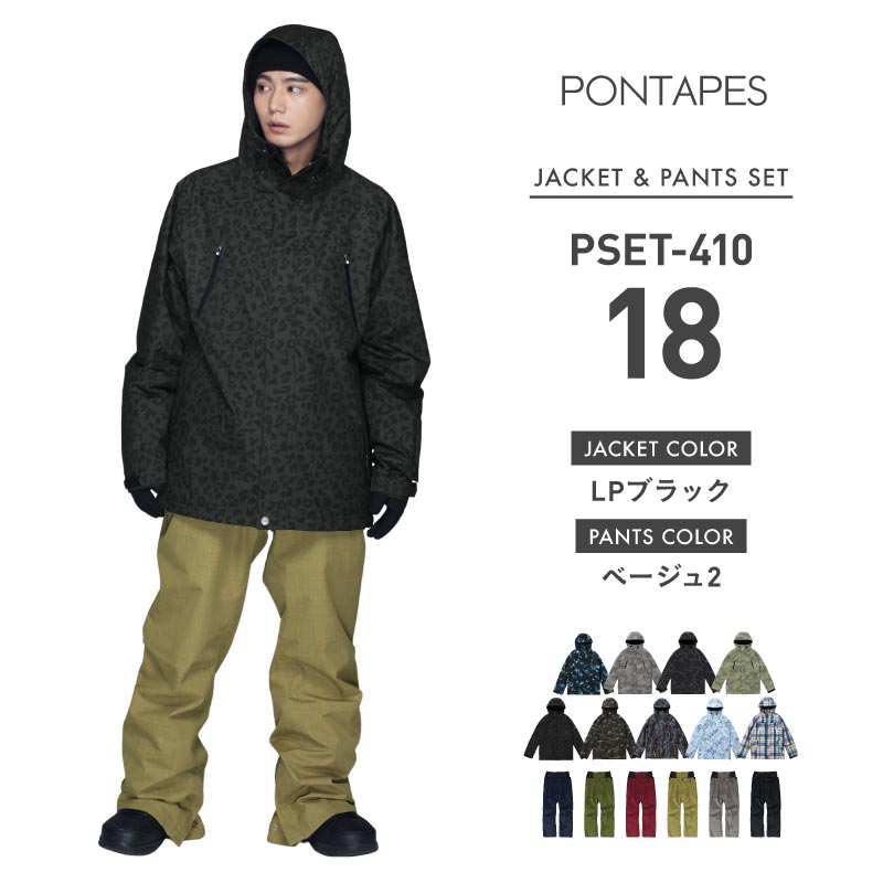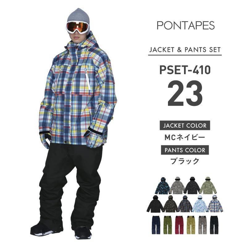[17~24カラー]スノーボードウェア メンズ 上下セット レギュラーシルエット 中綿入り 撥水 防寒 25-26モデル PONTAPES/ポンタぺス PSET-410