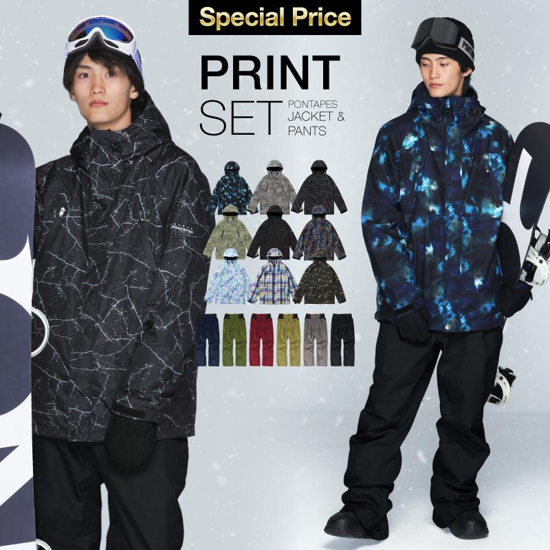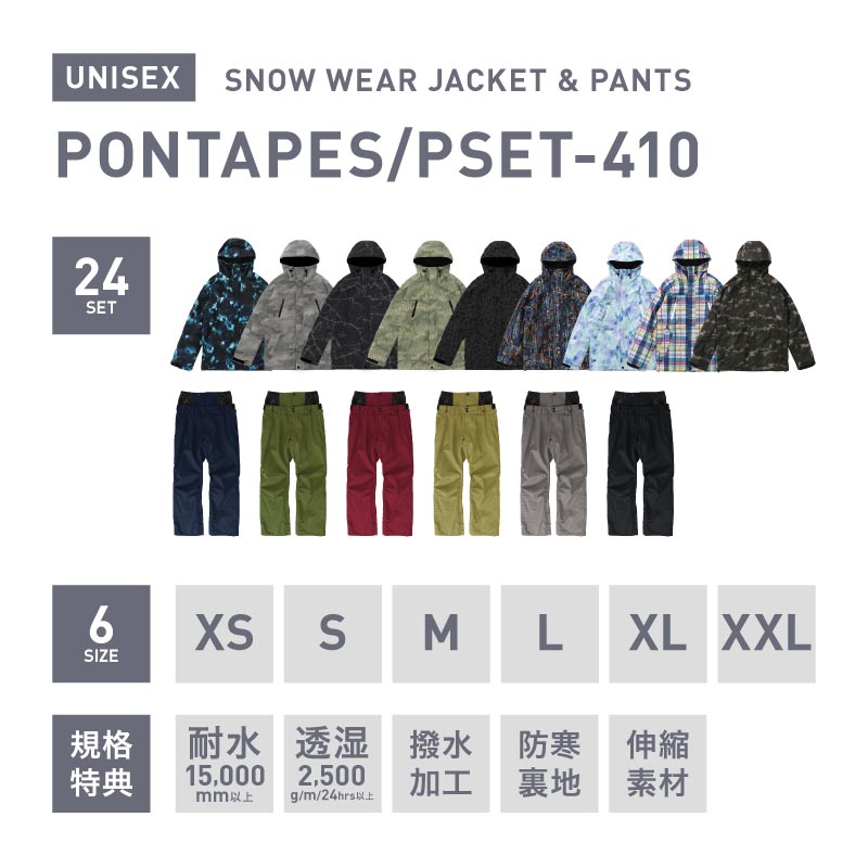2025-2026モデル PONTAPES/ポンタぺス ユニセックス スノーボードウェア 上下セット PSET-410