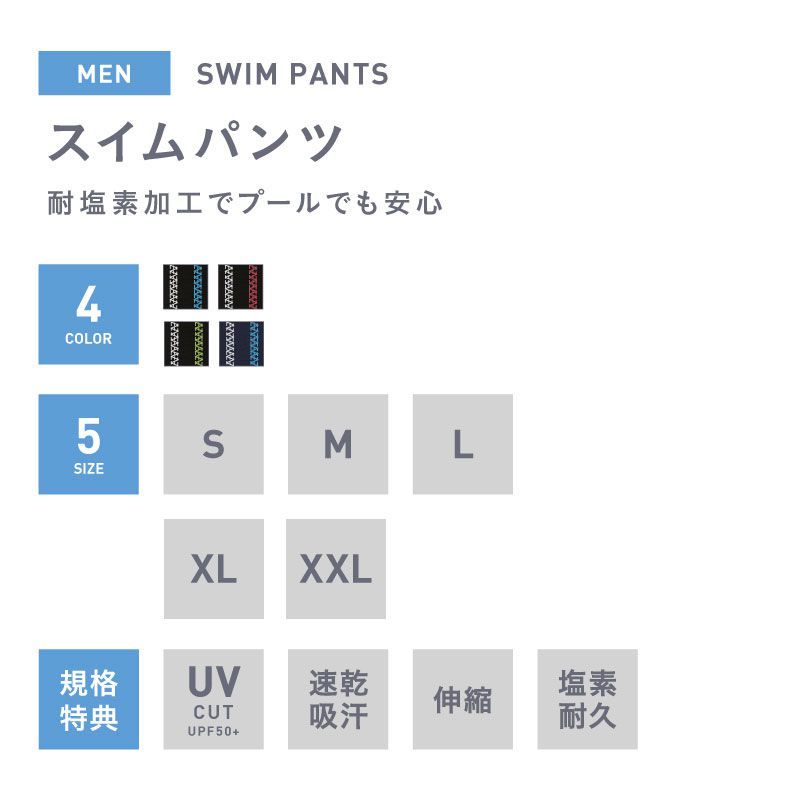 | PONTAPES PR-4950 남성 수영 바지 신축하는 스트레치 소재로 움직임을 방해하지 않고 몸에 피트! 【수영 바지】 ・신축 소재로 몸에 피트 ・풀에서도 안심의 내염소 가공 ・웨스트는 끈으로 조절 가능 |