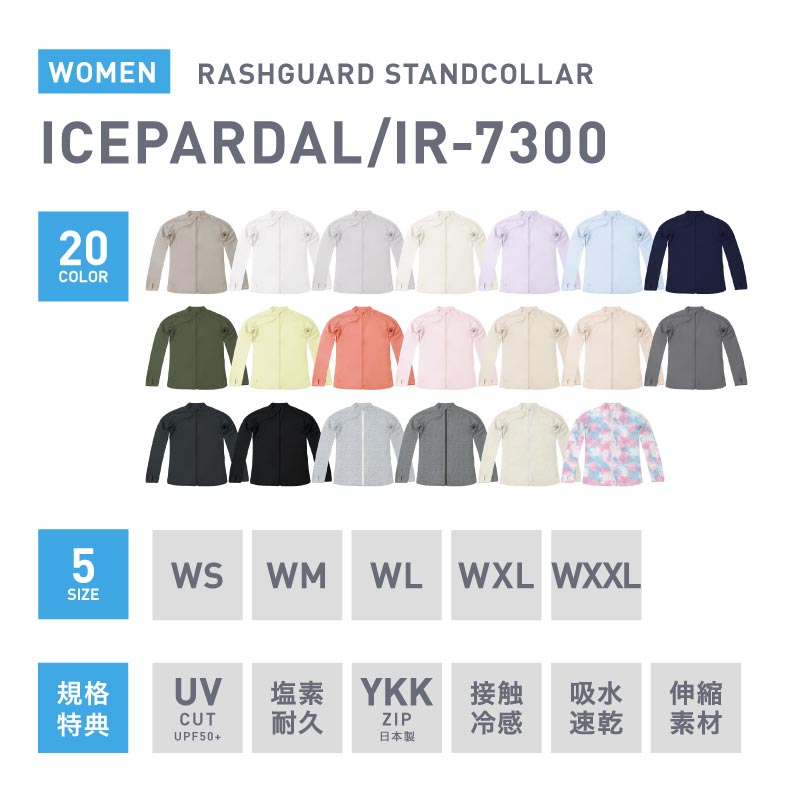 | ICEPARDAL IR-7300 여성 스탠드 컬러 러쉬 가드 수영복 소재의 러쉬 가드! 액티브하게 움직이기 쉽고 수영에 적합한 서 칼라 타입입니다. 【러쉬 가드】 ・UPF50+로 선탠을 방지 ・풀에서도 입은 채로 수영하는 내염소 가공 ・접촉 냉감으로 서늘하고, 사랏한 착용감 ・고품질의 YKK Zip 사양 ・신축하는 스트레치 소재 ・삼홀로 손등까지 썬탠 방지 |