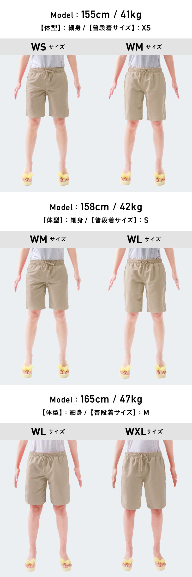 | WS · WM · WL · WXL · WXXL · W3L · W4L |