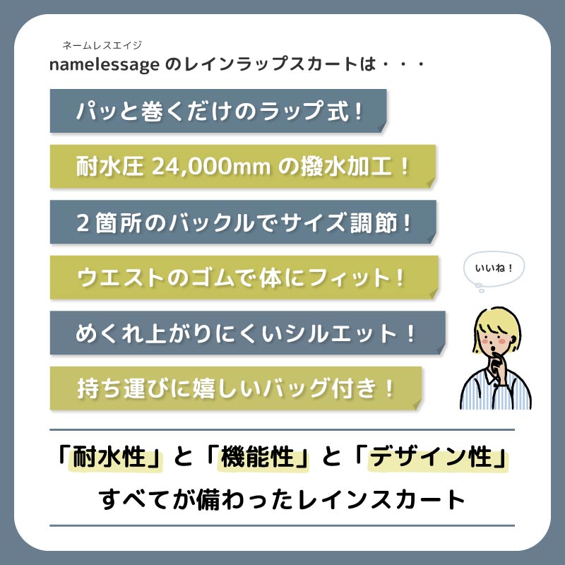 스트레치 와인딩 스커트 레인웨어 맨즈 레이디스 namelessage NARS-6200