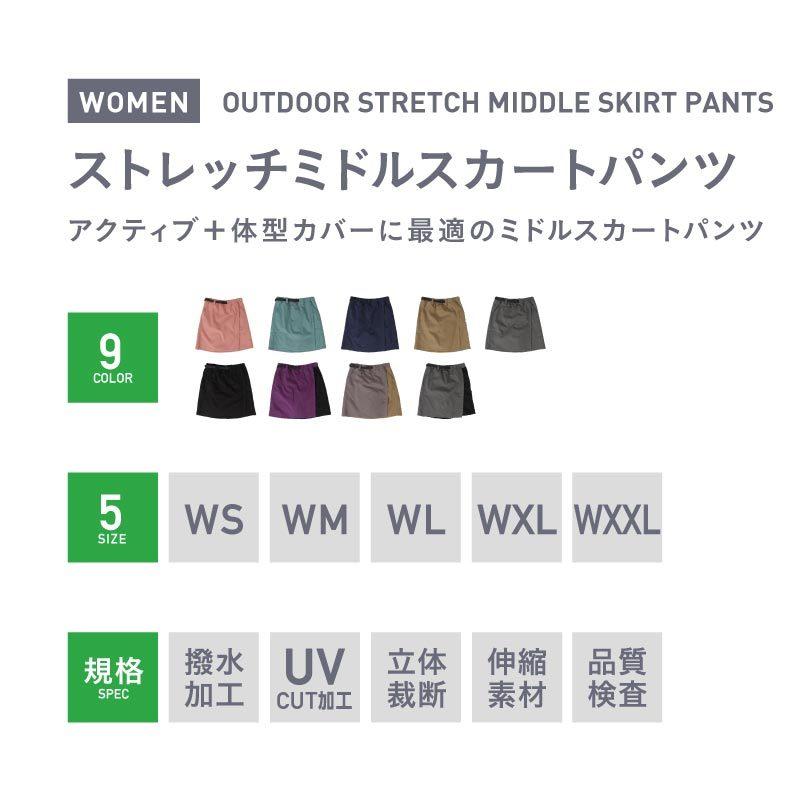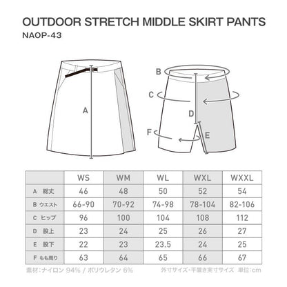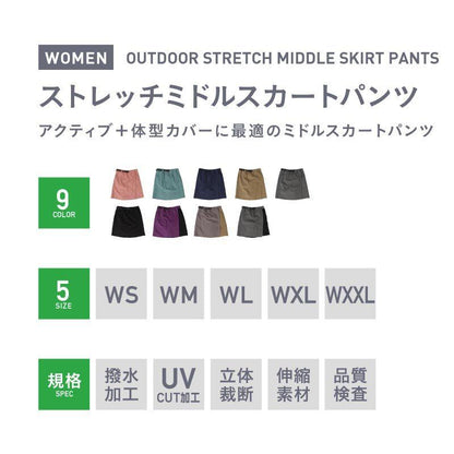 스트레치 미들 스커트 팬츠 아웃도어 웨어 레이디스 큐롯 하이킹 팬츠 스커트 namelessage NAOP-43
