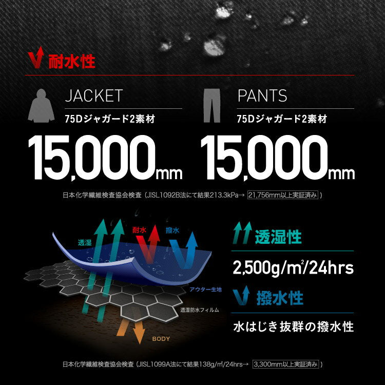 ・驚異の耐水・撥水力!高い耐水性能で雨雪などの水の侵入を防ぐ