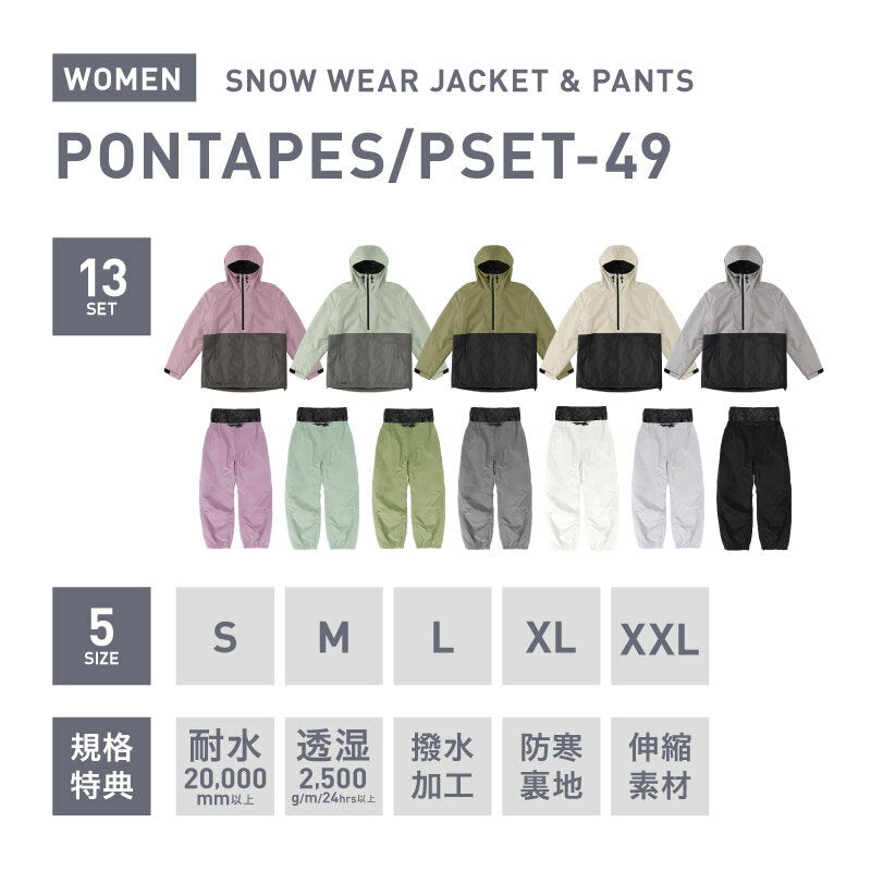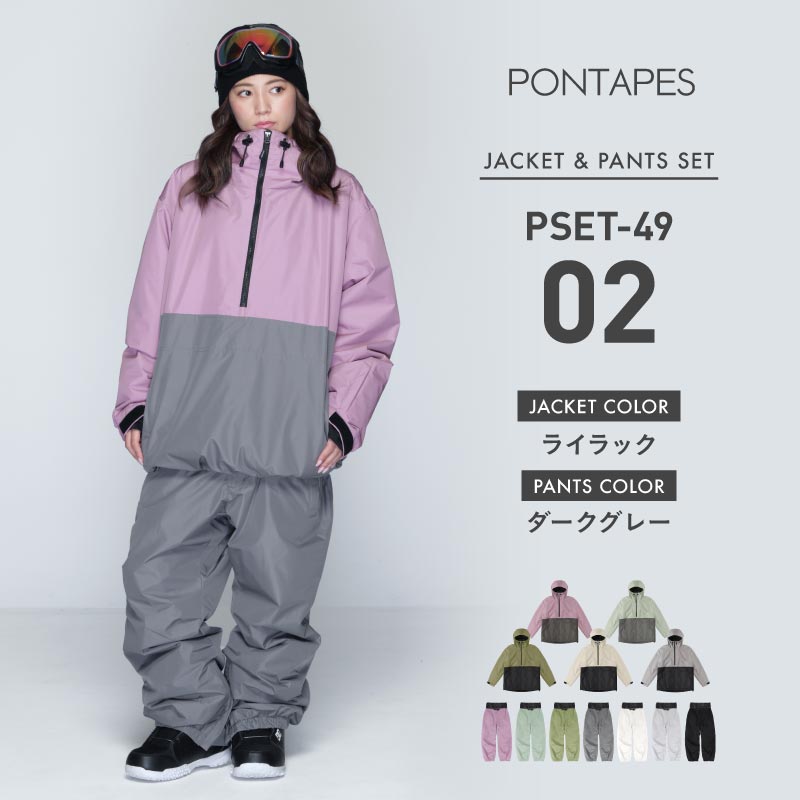 スノーボードウェア 上下セット レディース ルーズシルエット プルオーバー 中綿入り 撥水 防寒 25-26モデル PONTAPES/ポンタぺス PSET-49_i