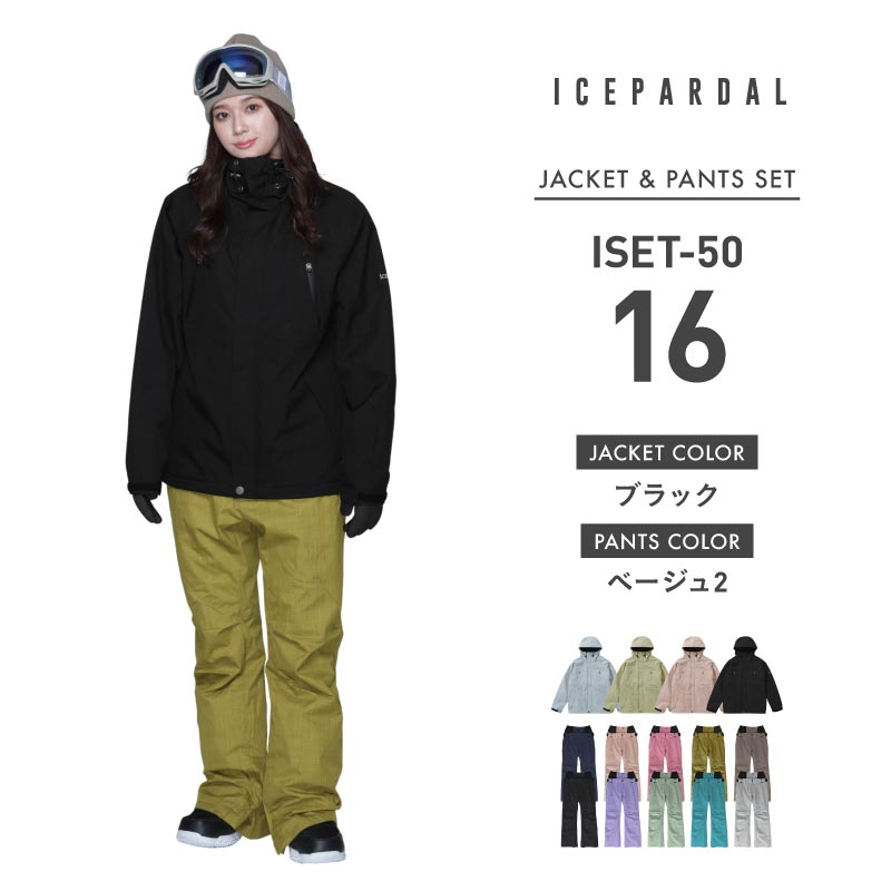 スノーボードウェア レディース 上下セット レギュラーシルエット スキーウェア 中綿入り 撥水 防寒 25-26モデル ICEPARDAL/アイスパーダル ISET-50