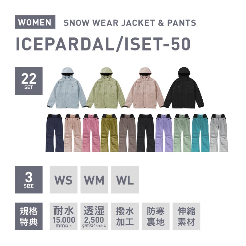 2025-2026モデル ICEPRDAL/アイスパーダル レディース スノーボードウェア 上下セット ISET-50
