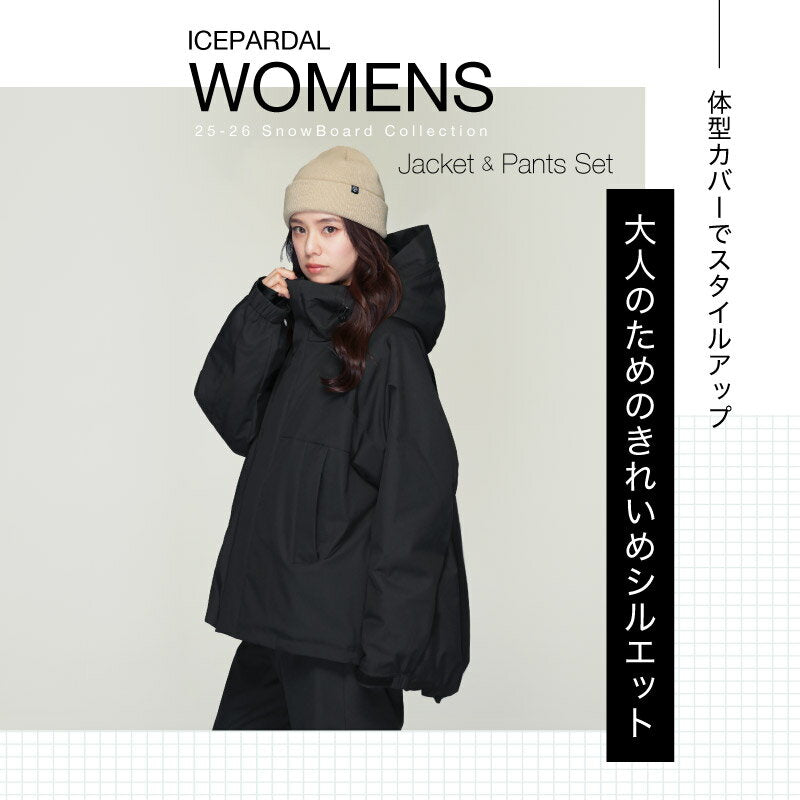 スノーボードウェア レディース 上下セット 体型カバー 美シルエット 25-26モデル ICEPARDAL/アイスパーダル IASET-11