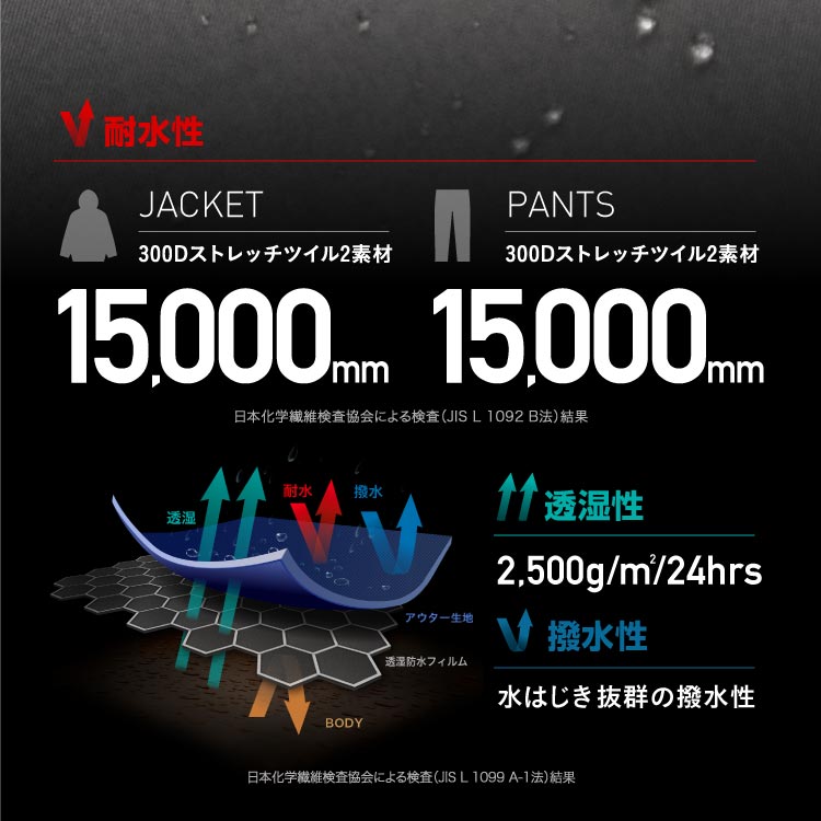 300Dストレッチツイル2素材/耐水圧20,000mm