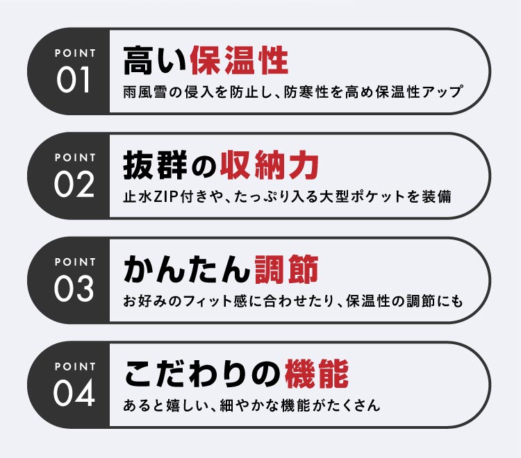 ・驚異の耐水・撥水力!高い耐水性能で雨雪などの水の侵入を防ぐ