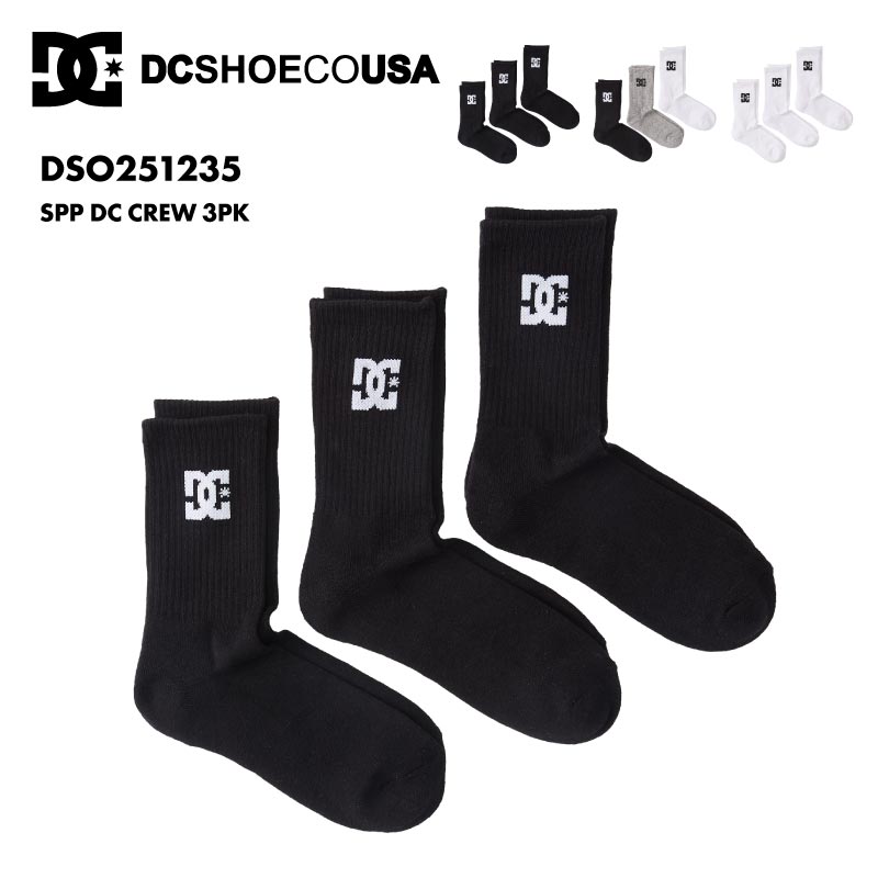 DC SHOES/ディーシー メンズ ソックス SPP DC CREW 3PK 2025 SPRING DSO251235 靴下 くつした ロゴ 3足セット クルーソックス ブランド 正規品 シンプル 男性用