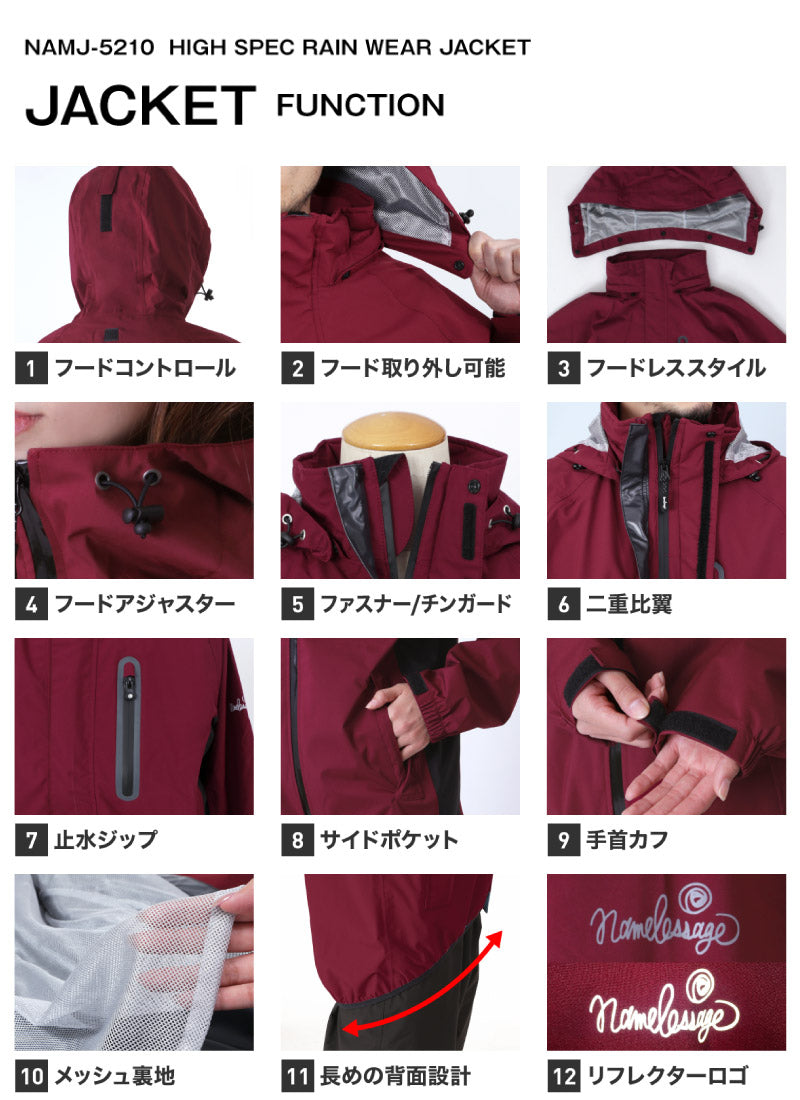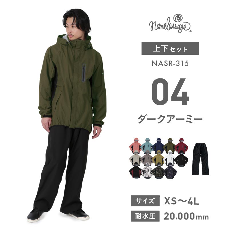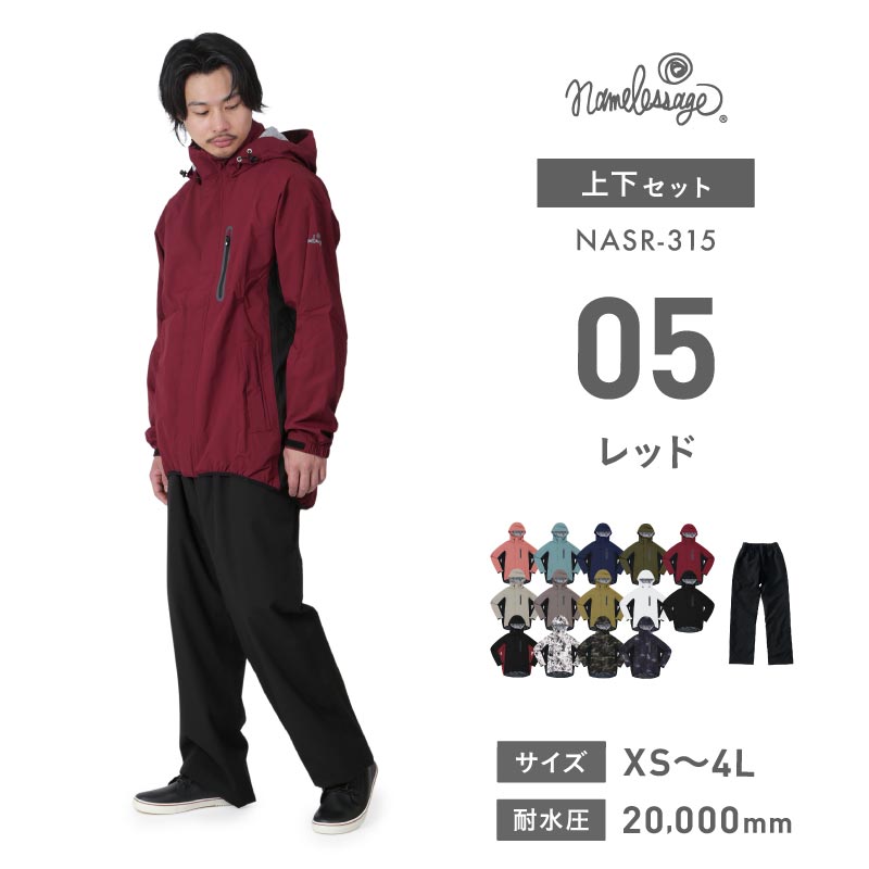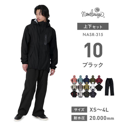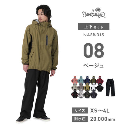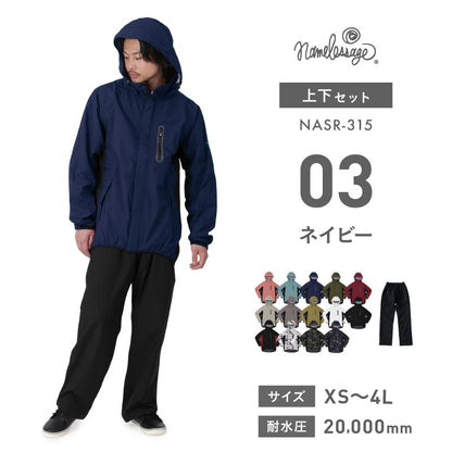 [1~10カラー]ハイスペック 上下セット レインウェア メンズ レディース 耐水圧20,000mm namelessage NASR-315