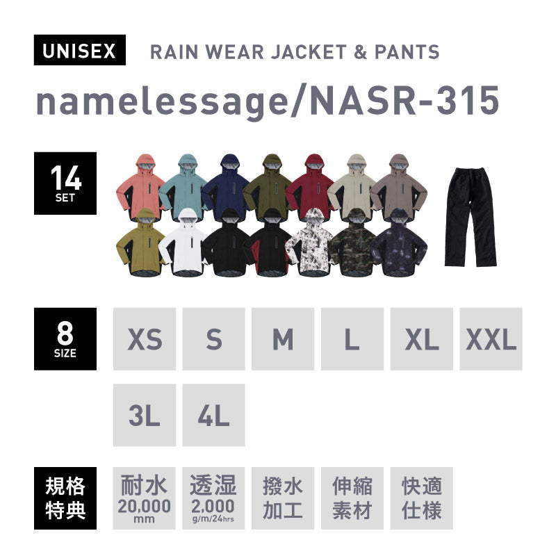 [11~14カラー]ハイスペック 上下セット レインウェア メンズ レディース namelessage NASR-310