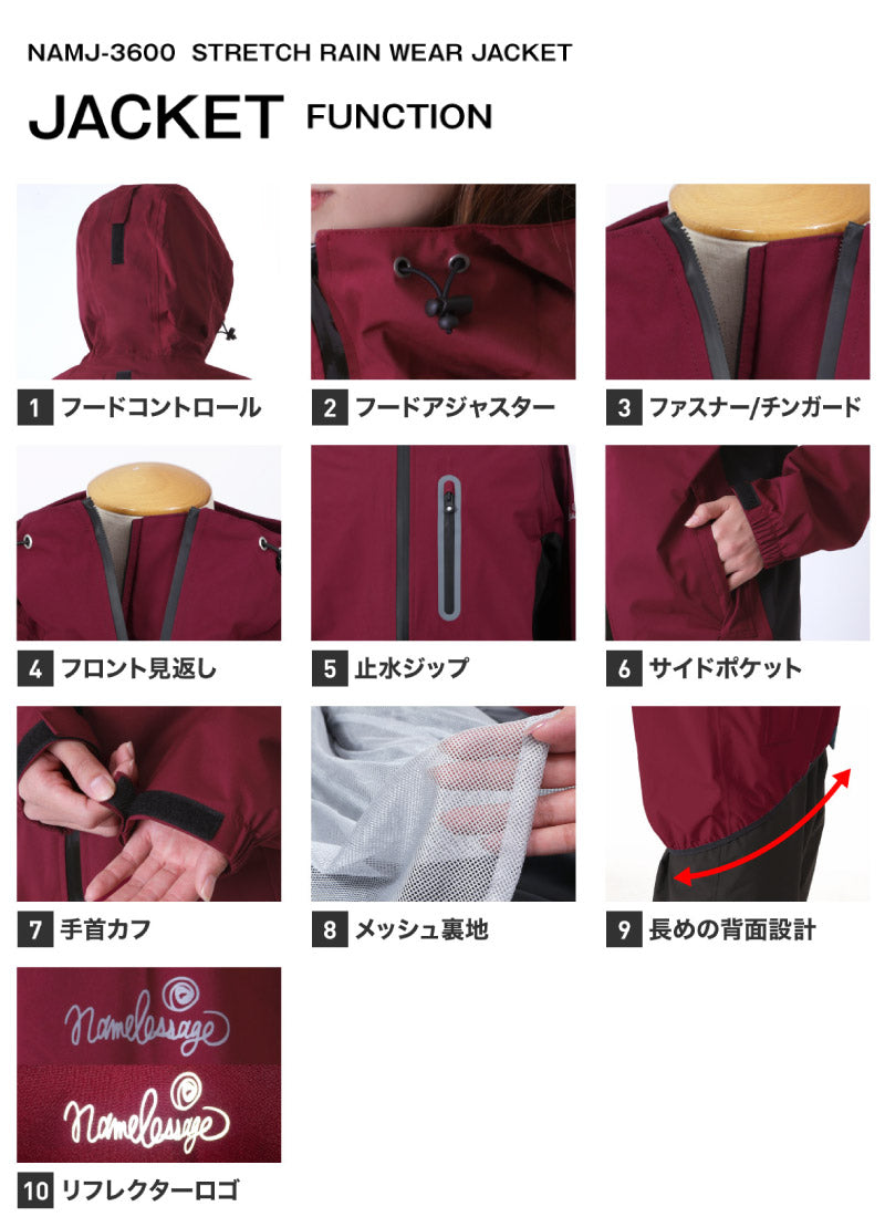 [11~18カラー]レインウェア ジャケット メンズ レディース 自転車 レインスーツ 通学 雨合羽 雨具 合羽 XS~4L 登山 耐水20,000mm ゴルフ 釣り NAMJ-3600