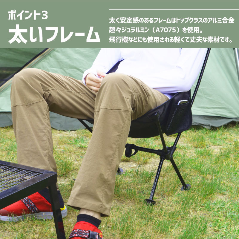 | namelessage/ネームレスエイジ アウトドア チェア NGCH-100 軽量、コンパクトで持ち運び便利。組み立ても簡単、頑丈なA7075(超々ジュラルミン)を使用。座りやすさも考えた組み立てハイチェア ◆素材:生地 ポリエステル100% フレーム 7075 アルミニウム合金 |