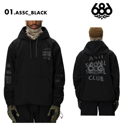 686/シックスエイトシックス メンズ 撥水 パーカー MENS WATERPROOF ASSC F1 HOODY 2025-26 WINTER M5WNCS125 スノーウェア スノーボードウェア スノボウェア スキーウェア ストレッチ素材 裏フリース 軽量 パスポケット ドローコード ブランド 男性用